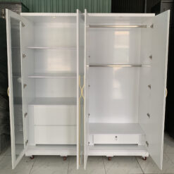 - Chất liệu: Gỗ MDF phủ Melamine chống trầy, chống ẩm.